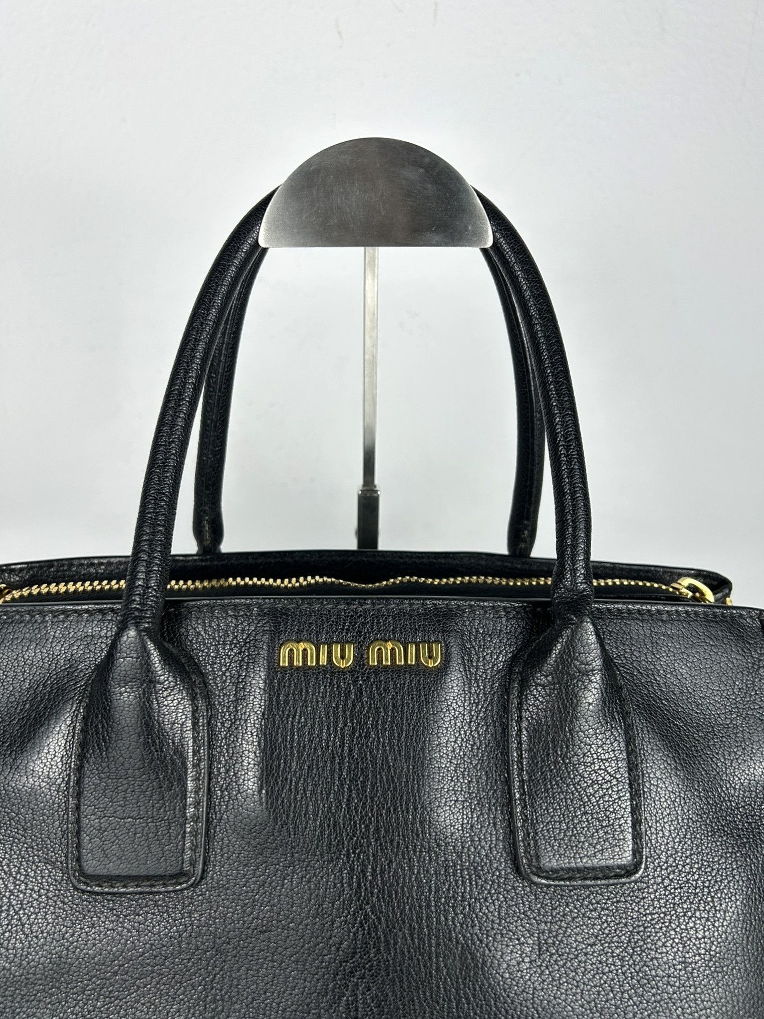 Miu miu madras leather tote bag