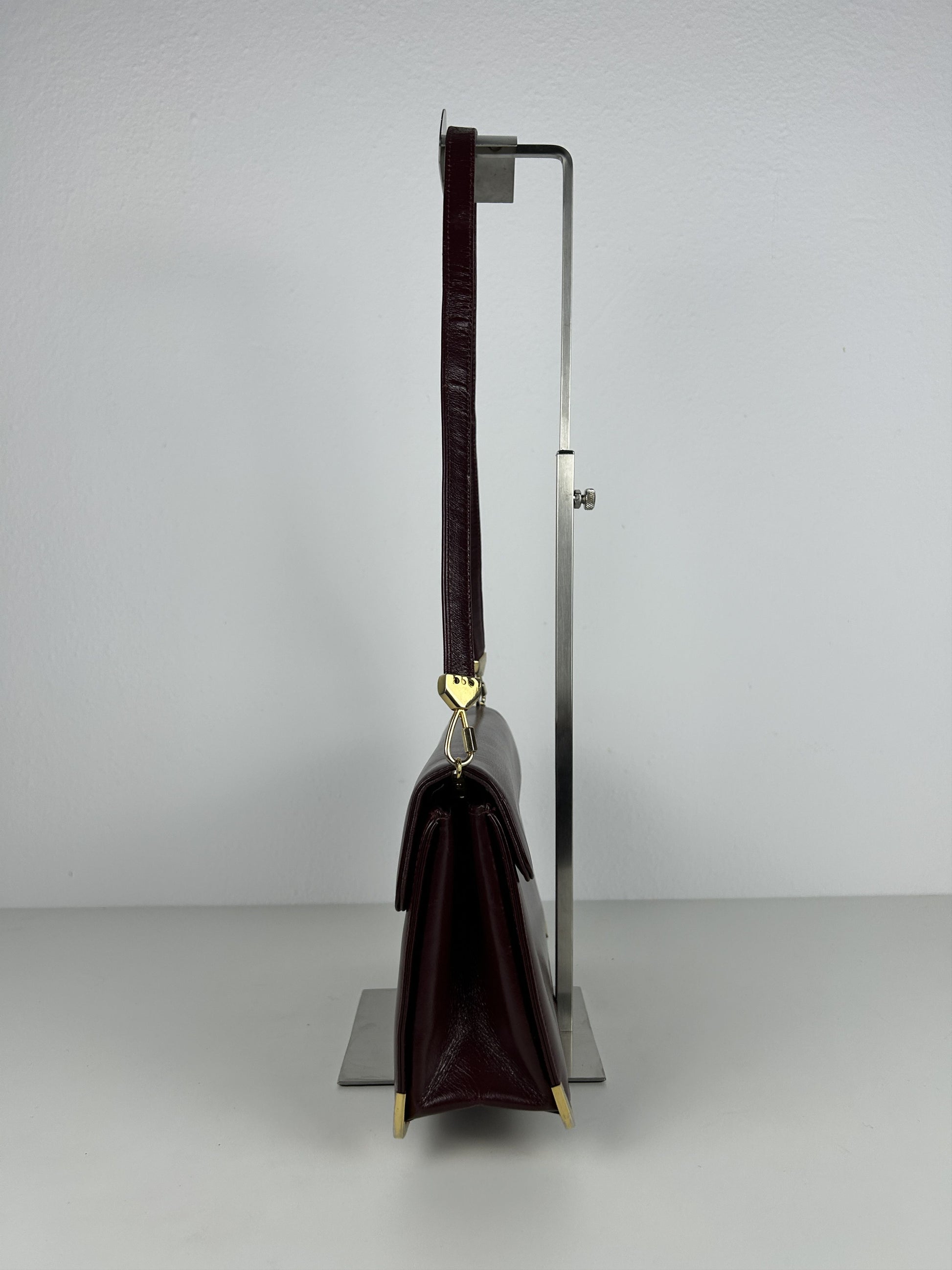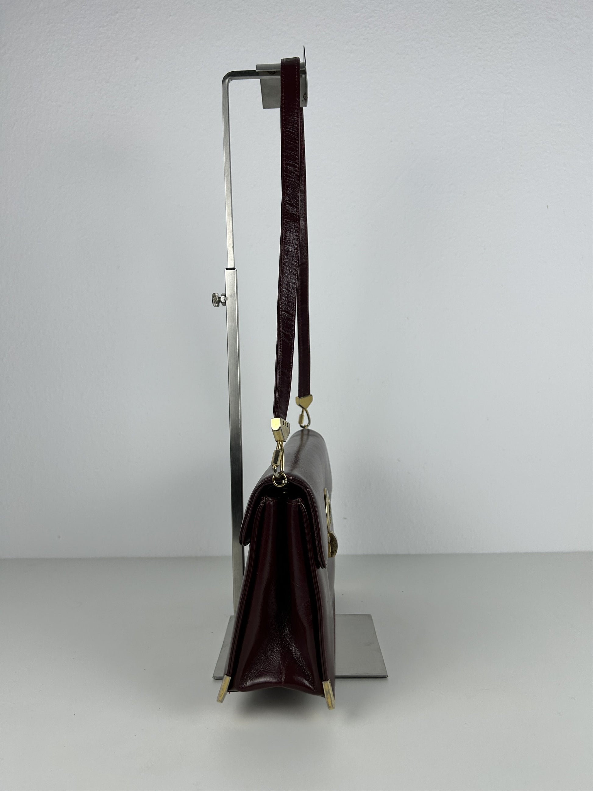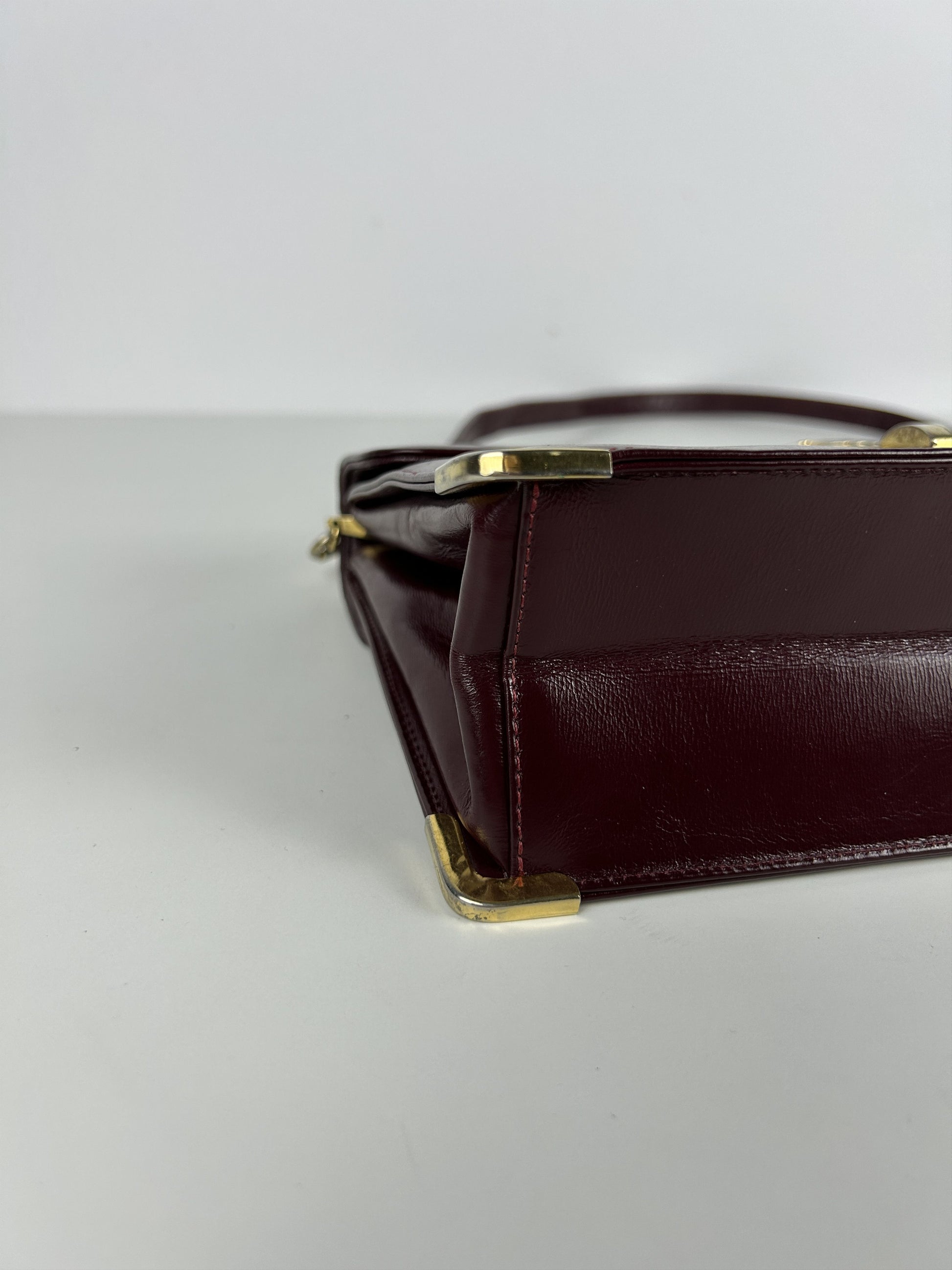 Vintage 80s Dior box calf leather burgundy handbag