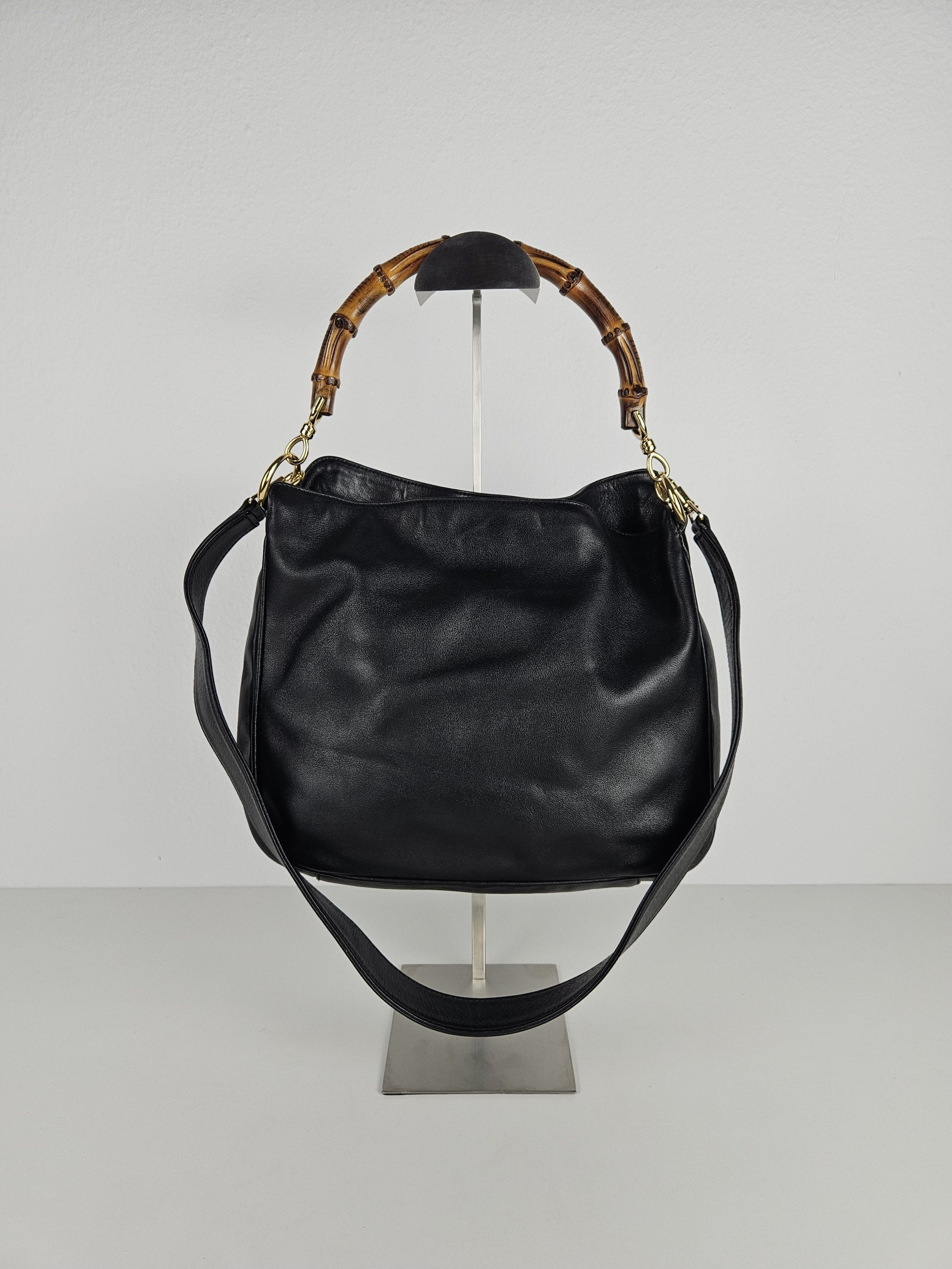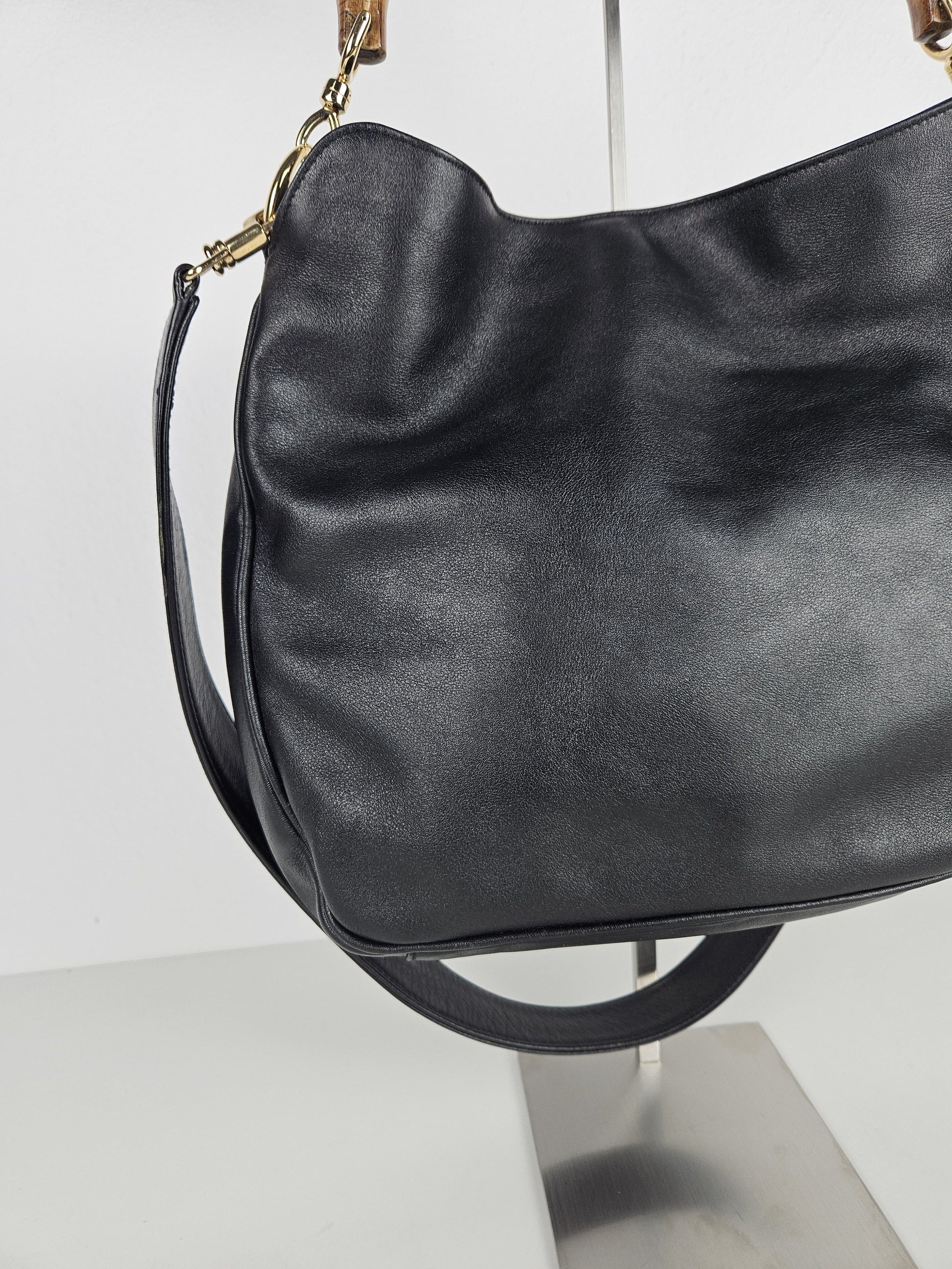 Vintage 80s gucci bamboo top handle calf leather handbag