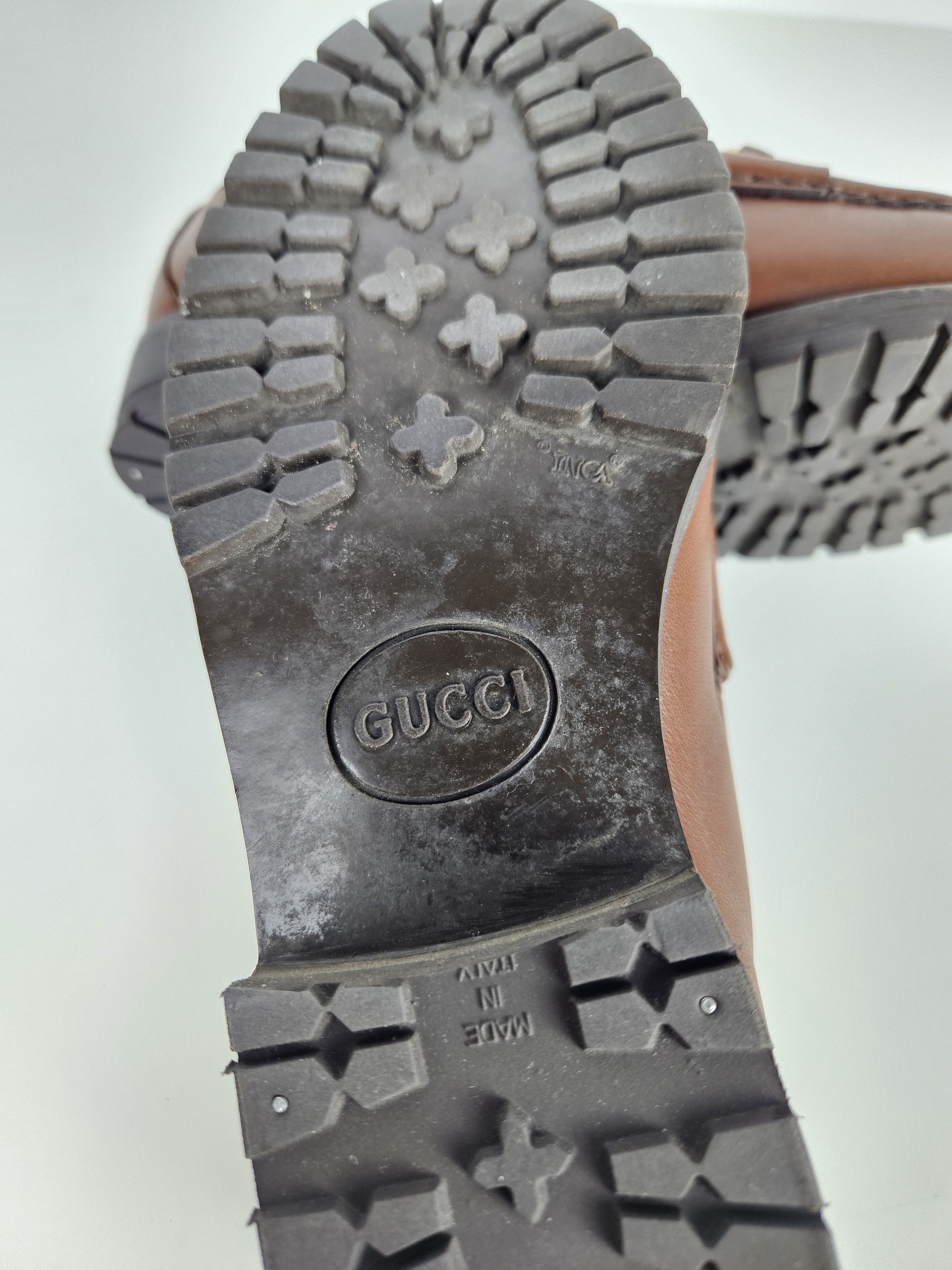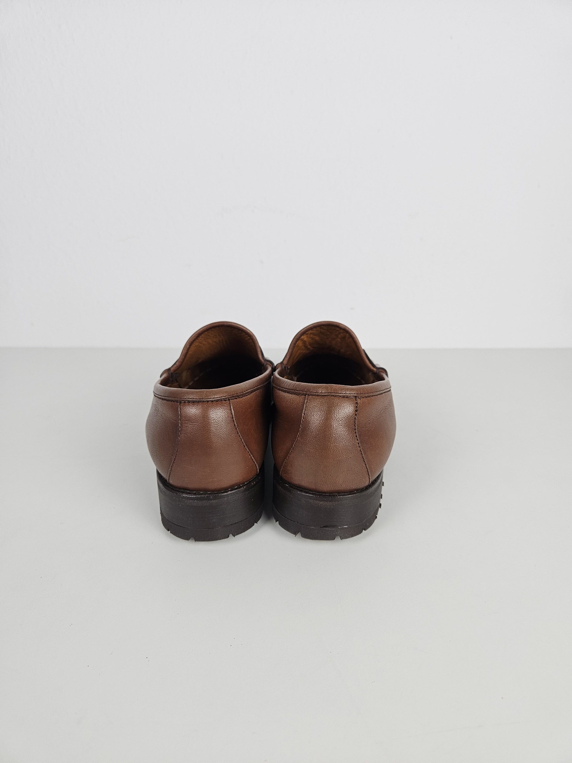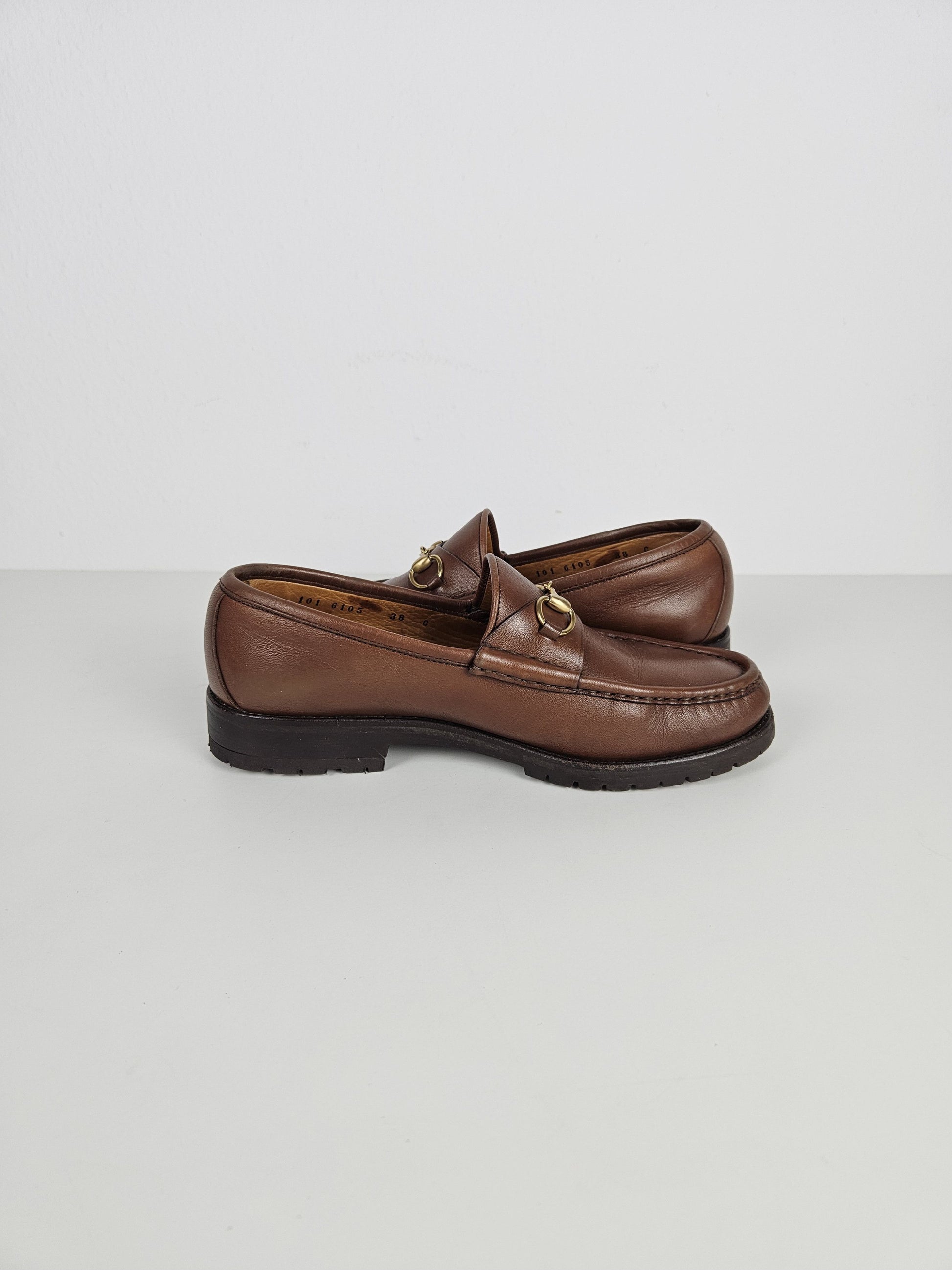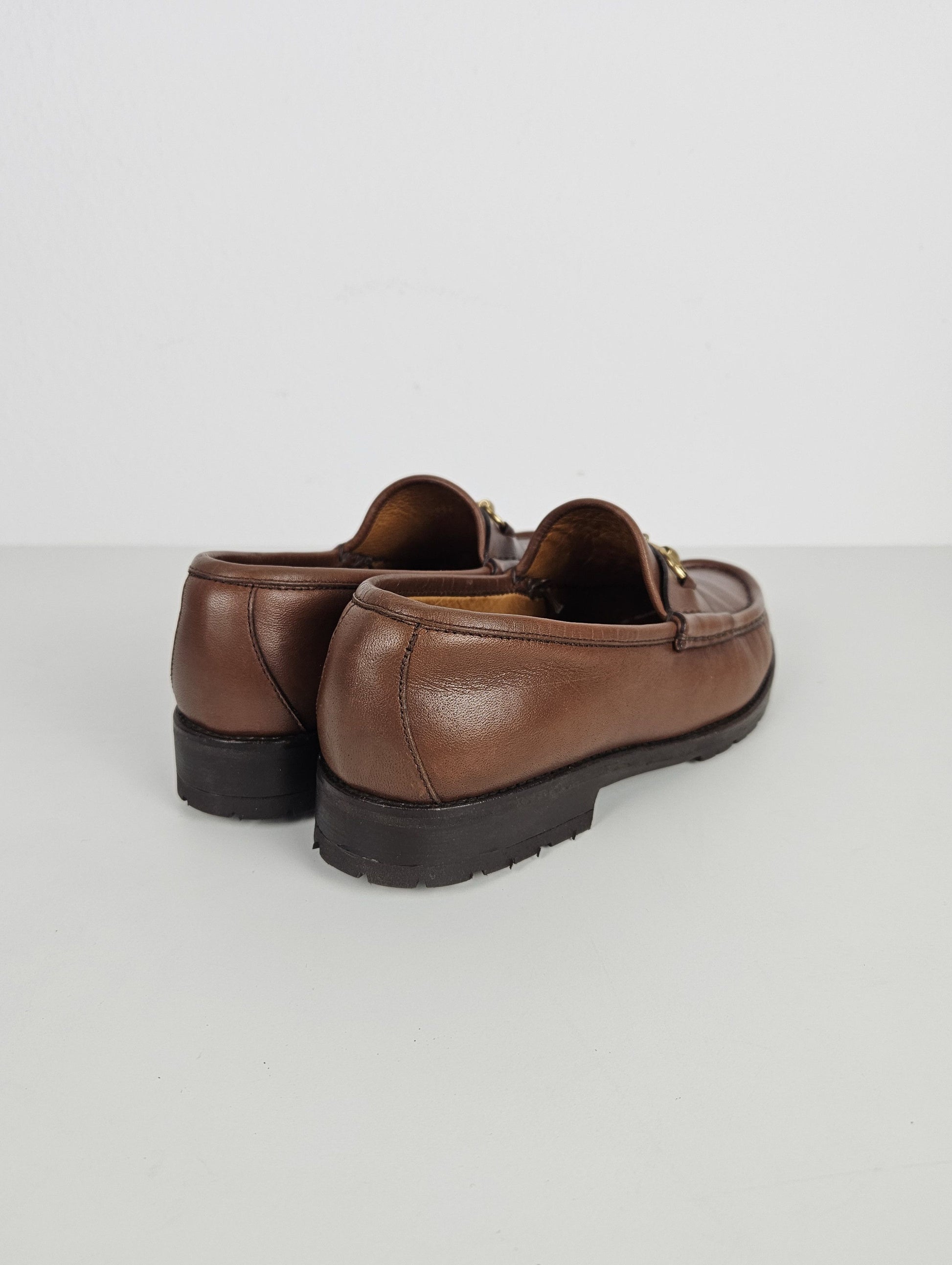 Vintage Gucci leather horsebit loafers with notched thick sole