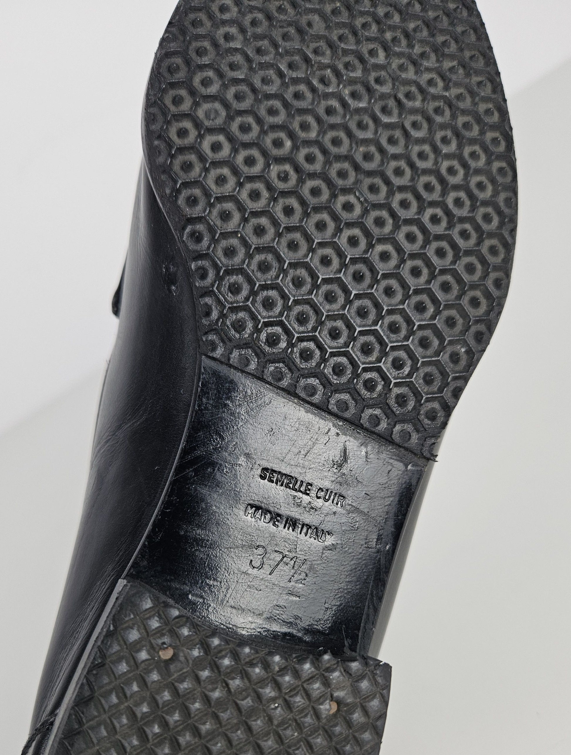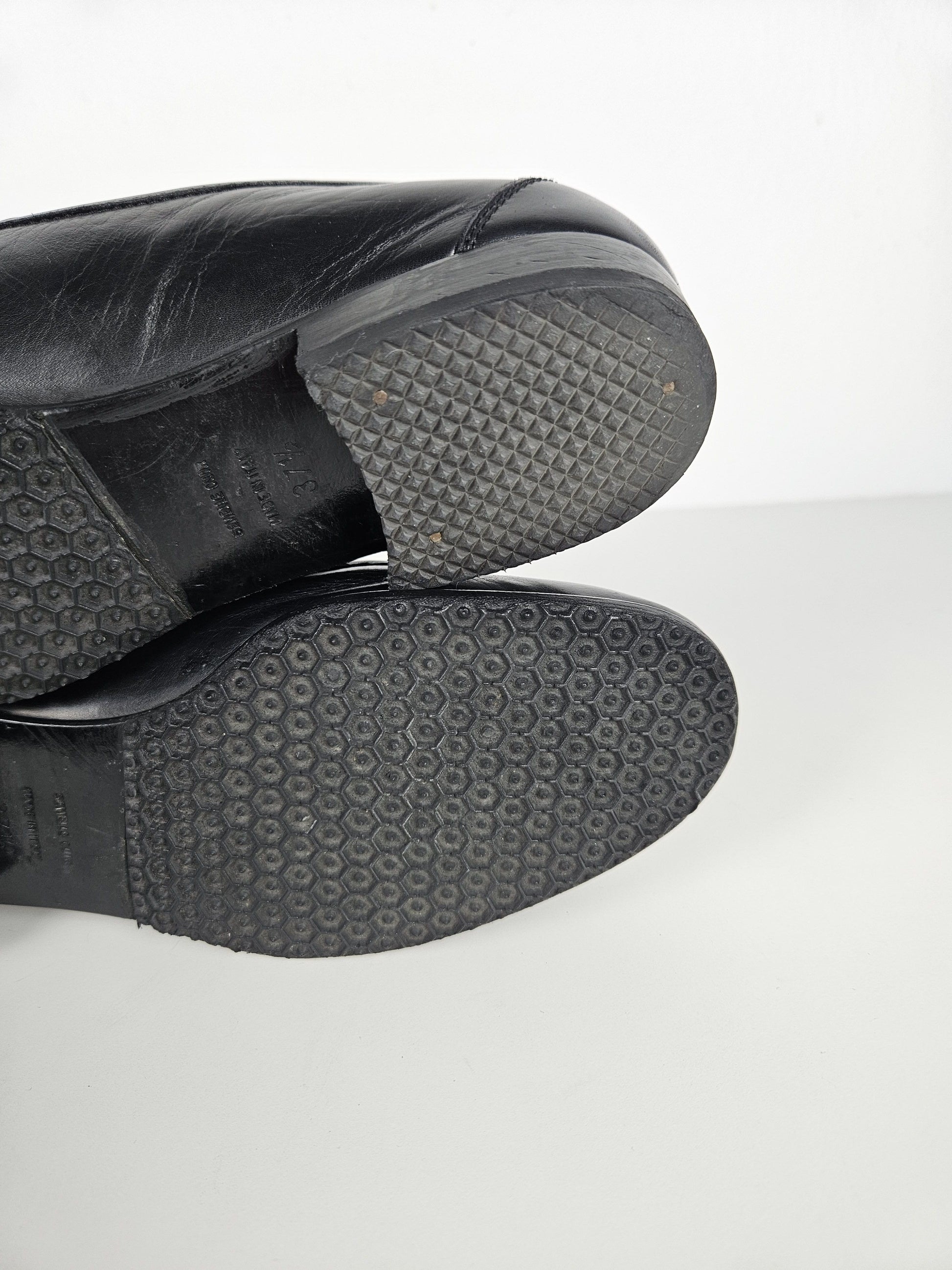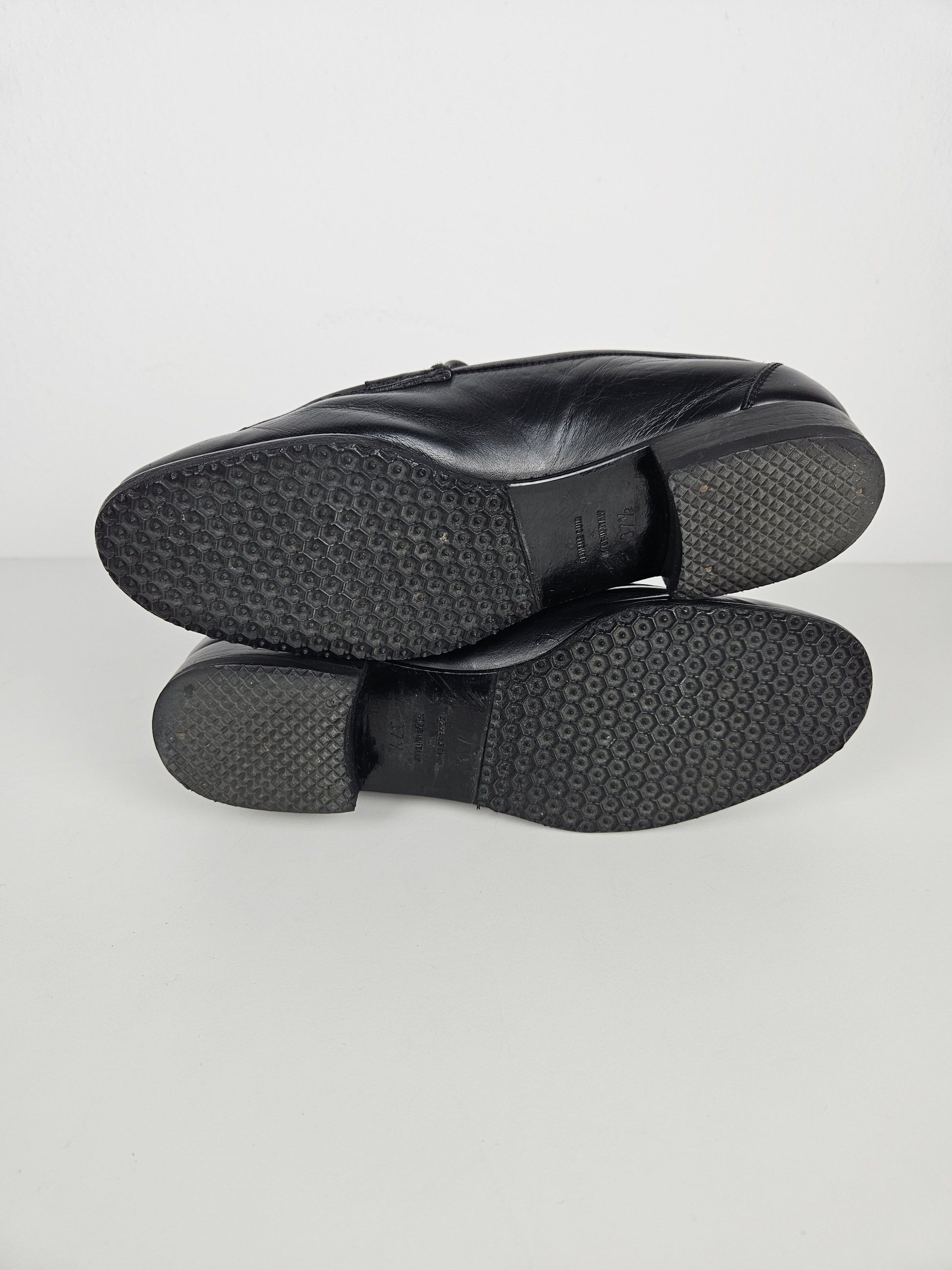 Recently underwent a professional restoration - there were some scuffs and shallow cracks on the tips that needed to be covered. Resoled by the previous owner. Size 37½ but quite narrow, the insole is 24 cm long. No original box or accessories.