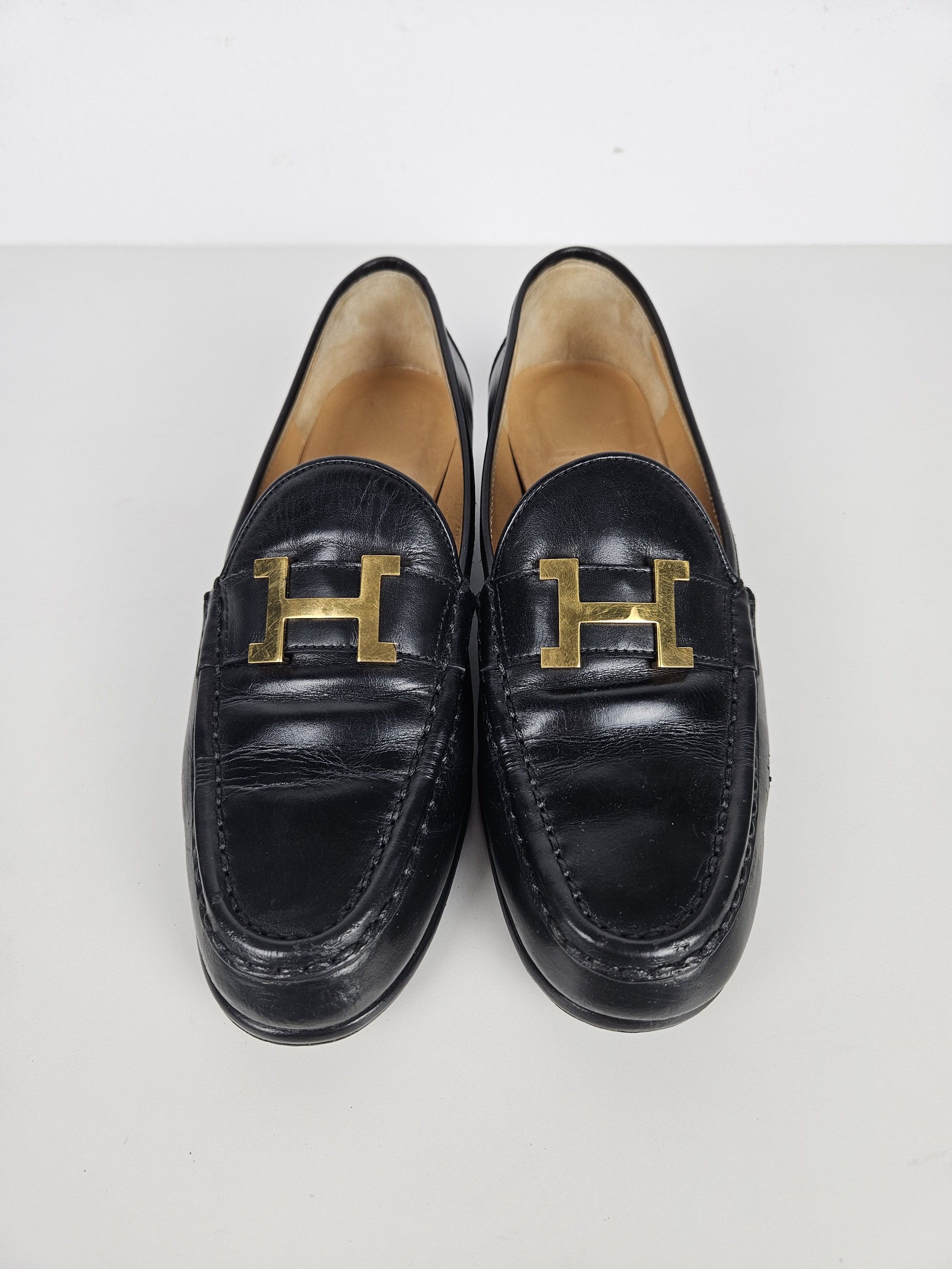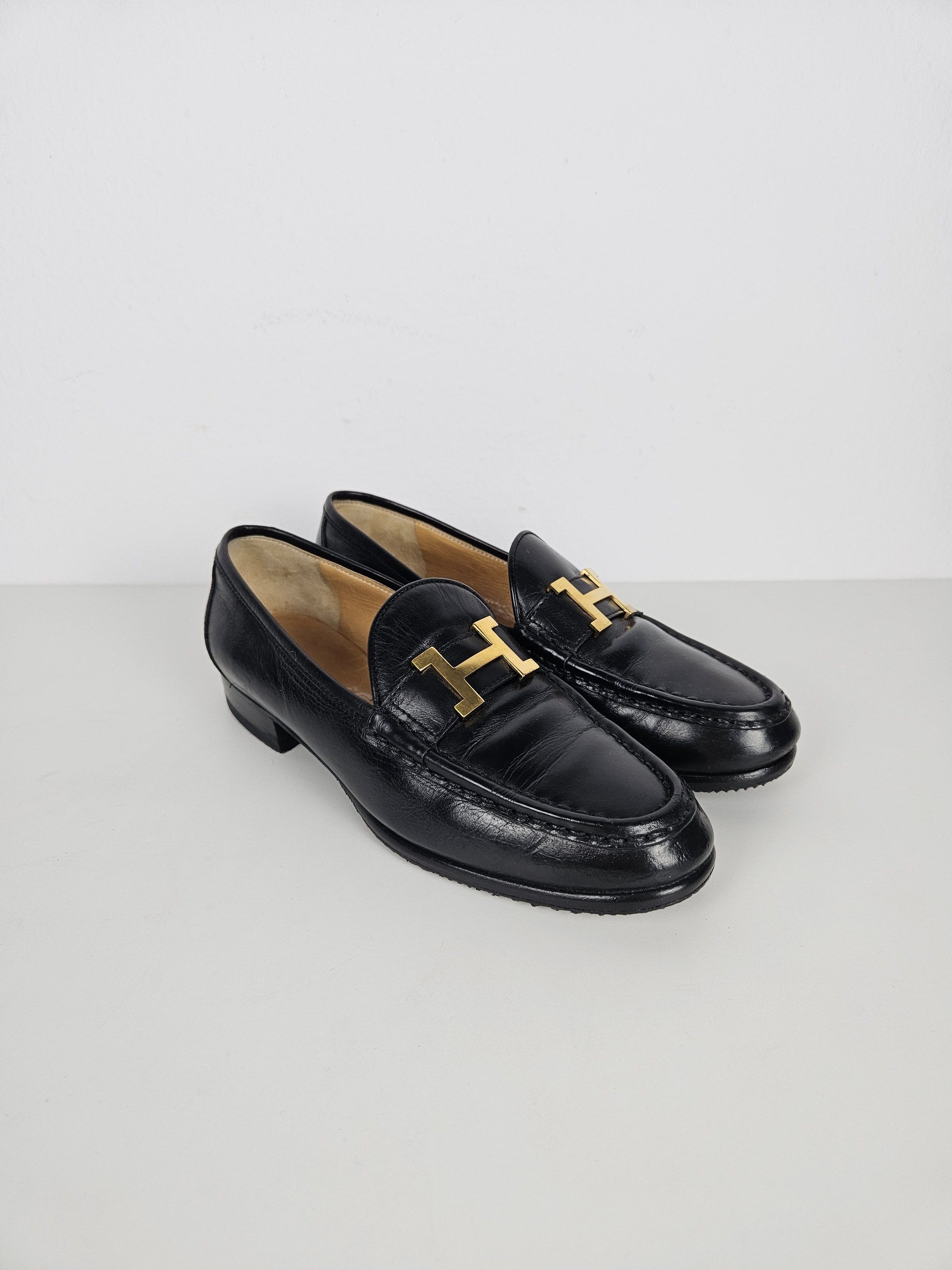 Vintage Hermes constance leather loafers H logo buckle