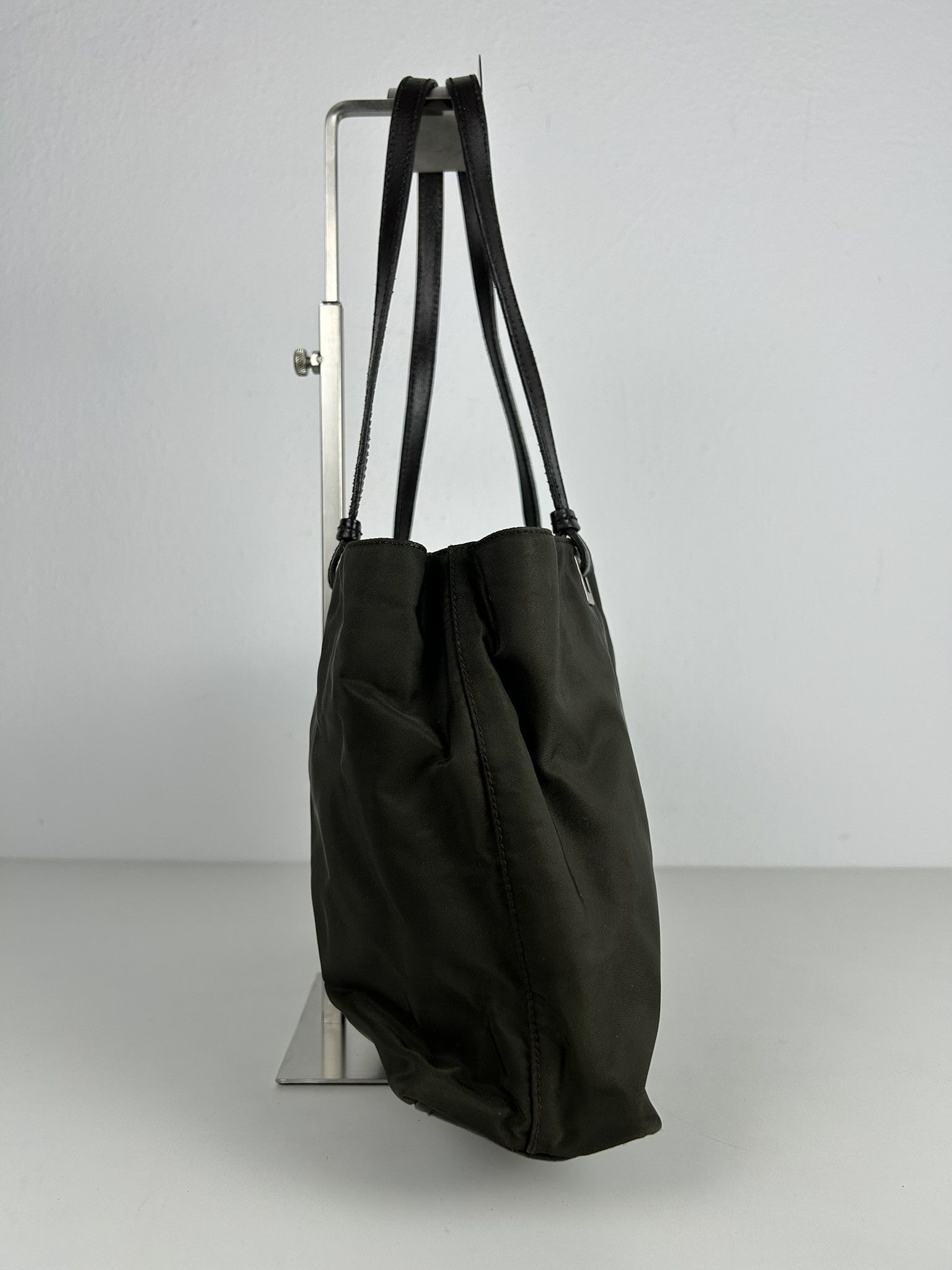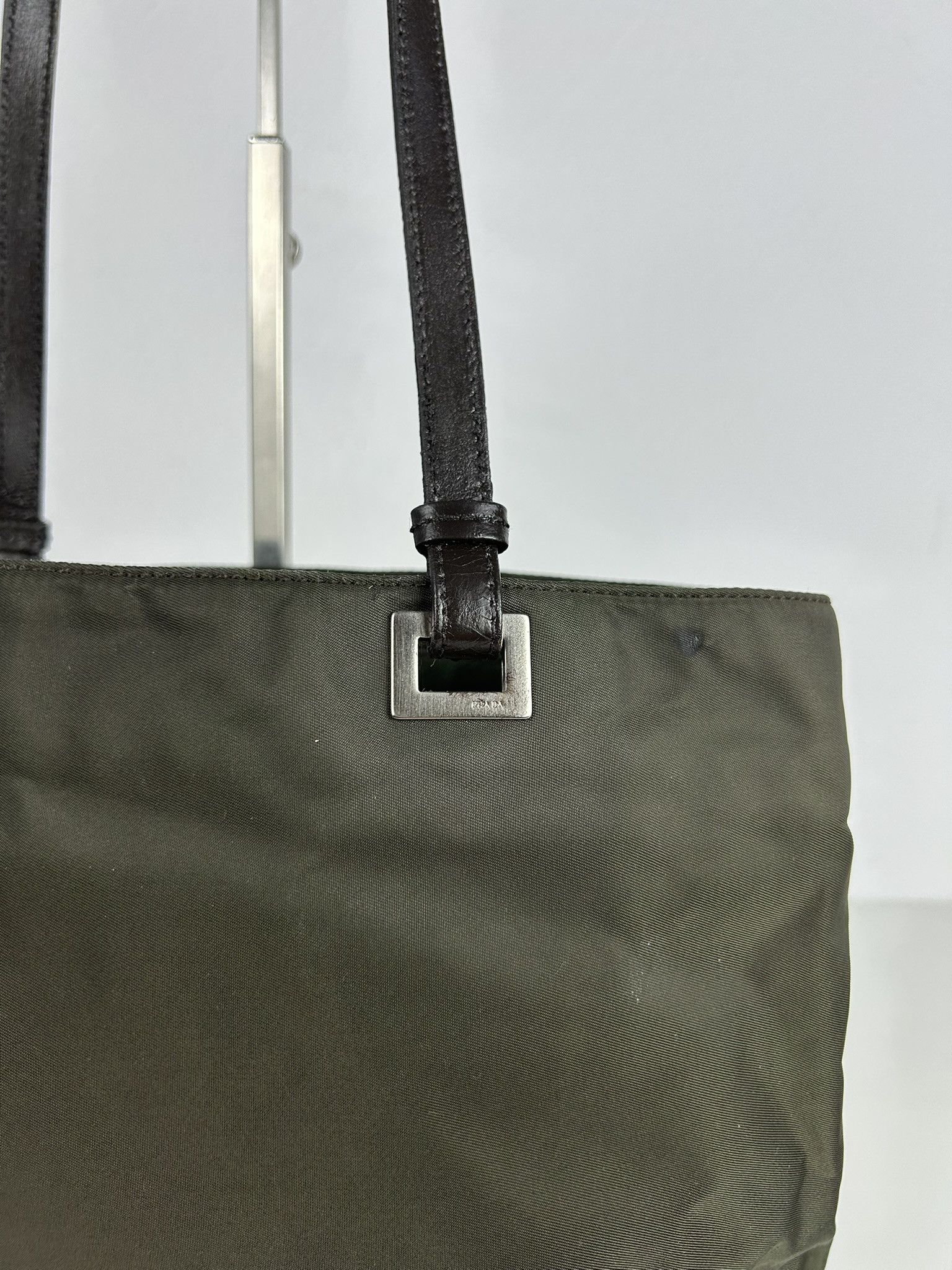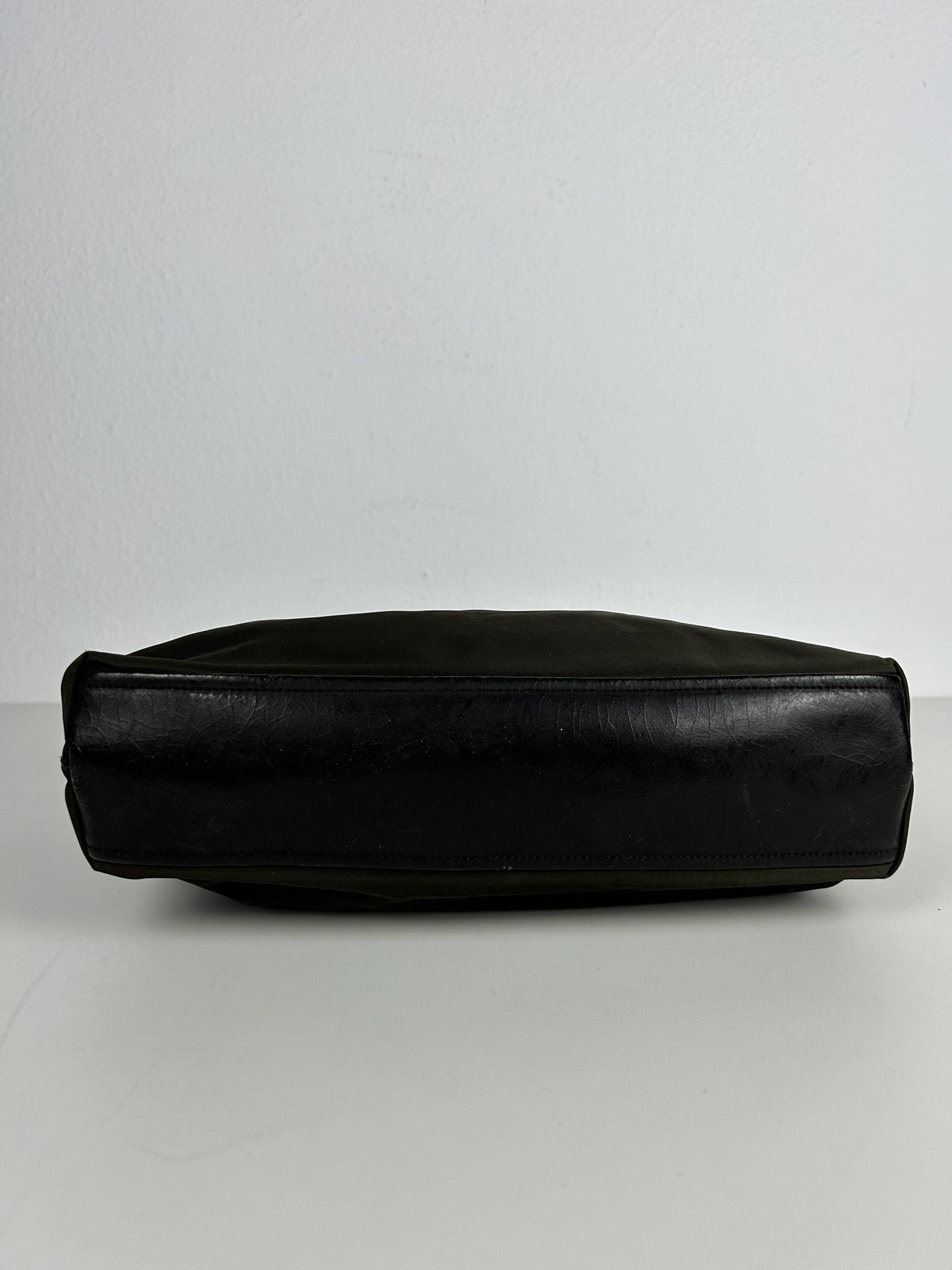 Vintage y2k prada nylon and leather triangle logo tote bag