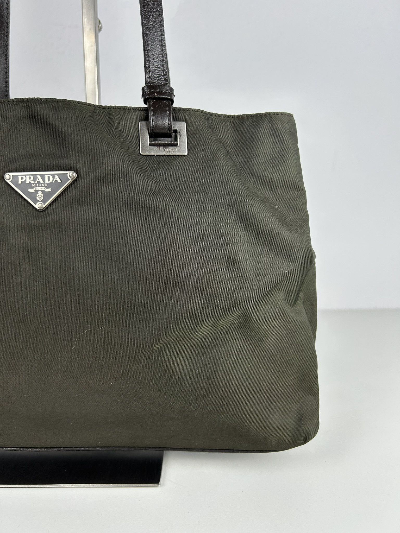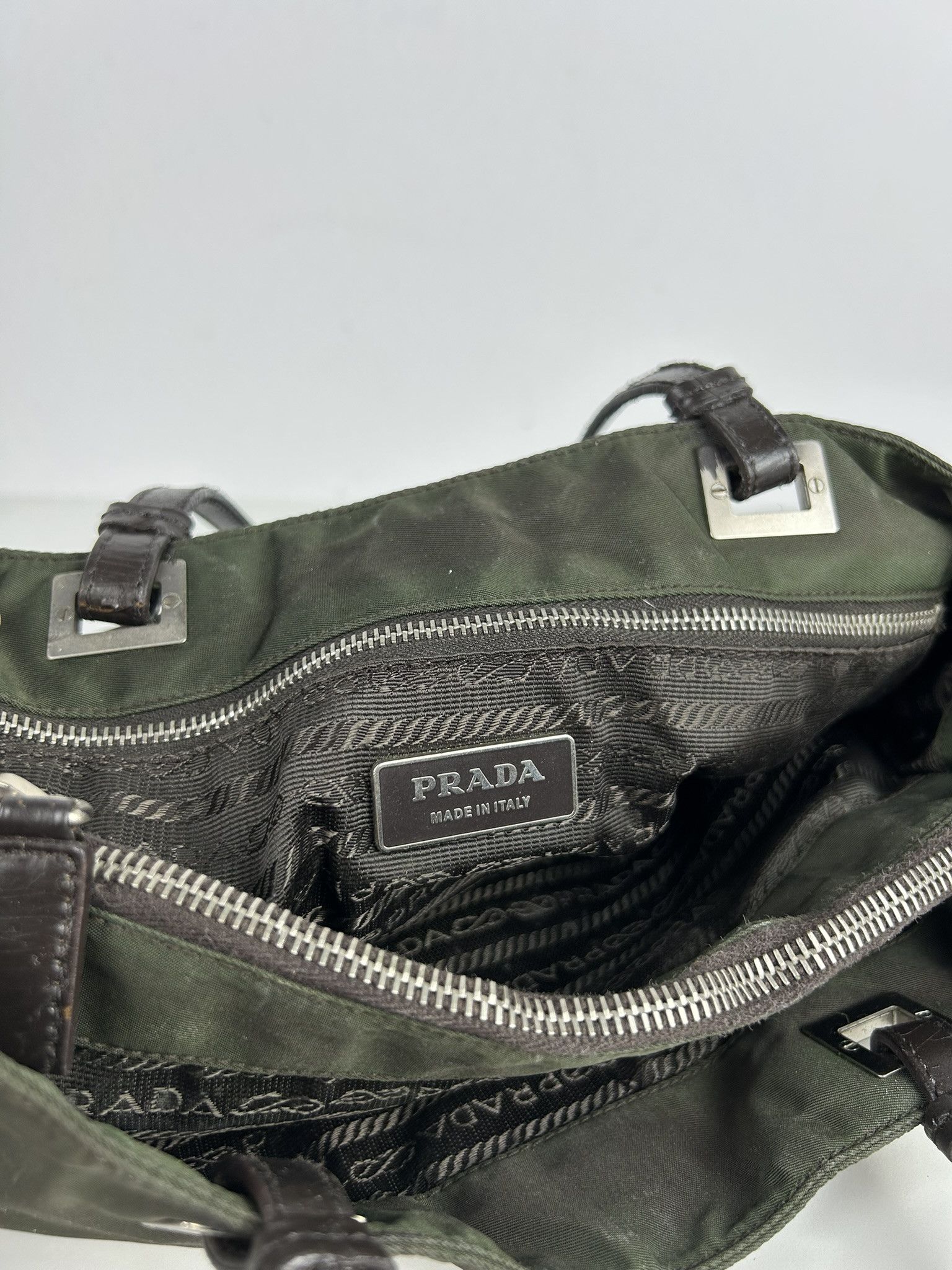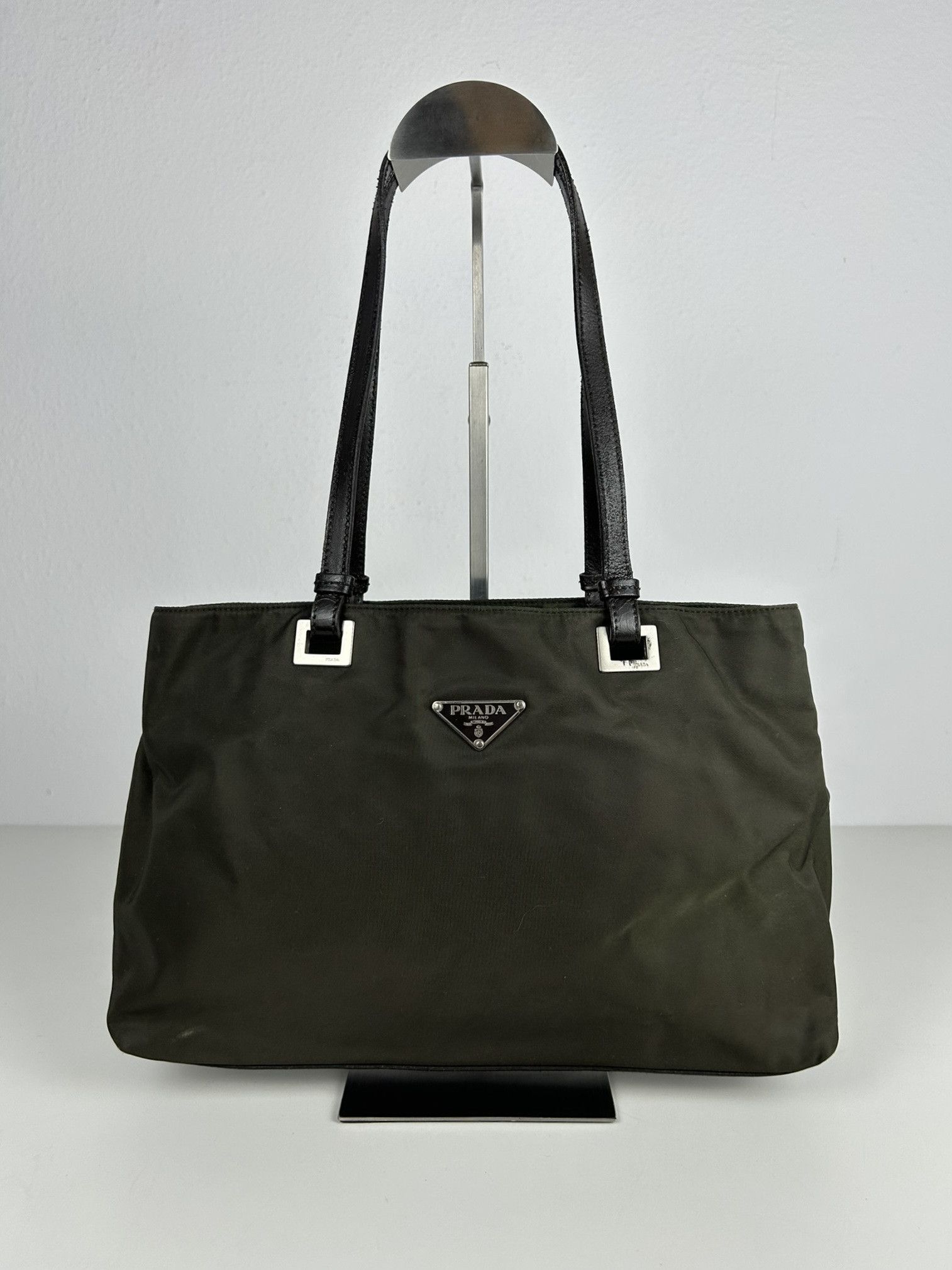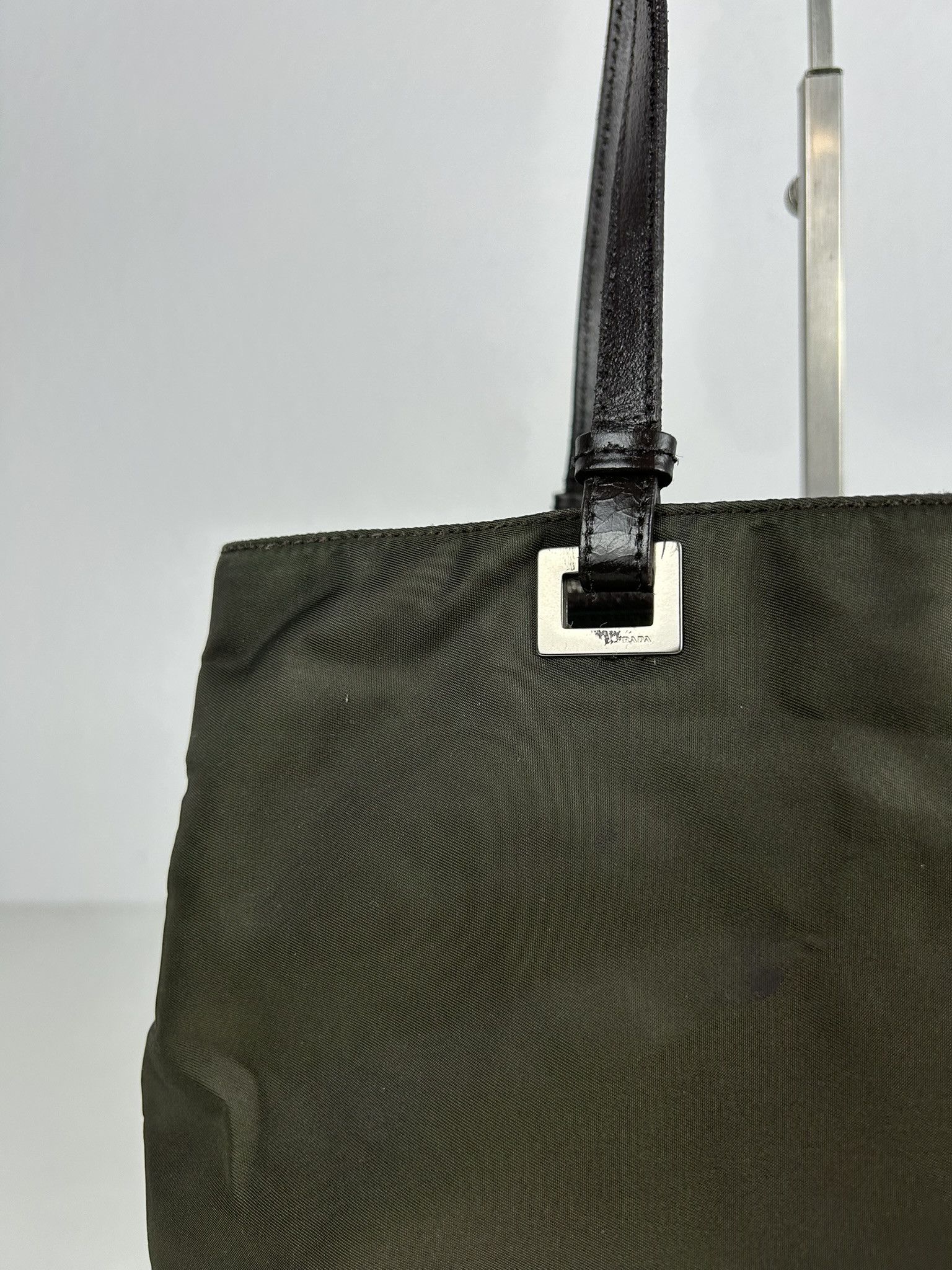 Vintage y2k prada nylon and leather triangle logo tote bag