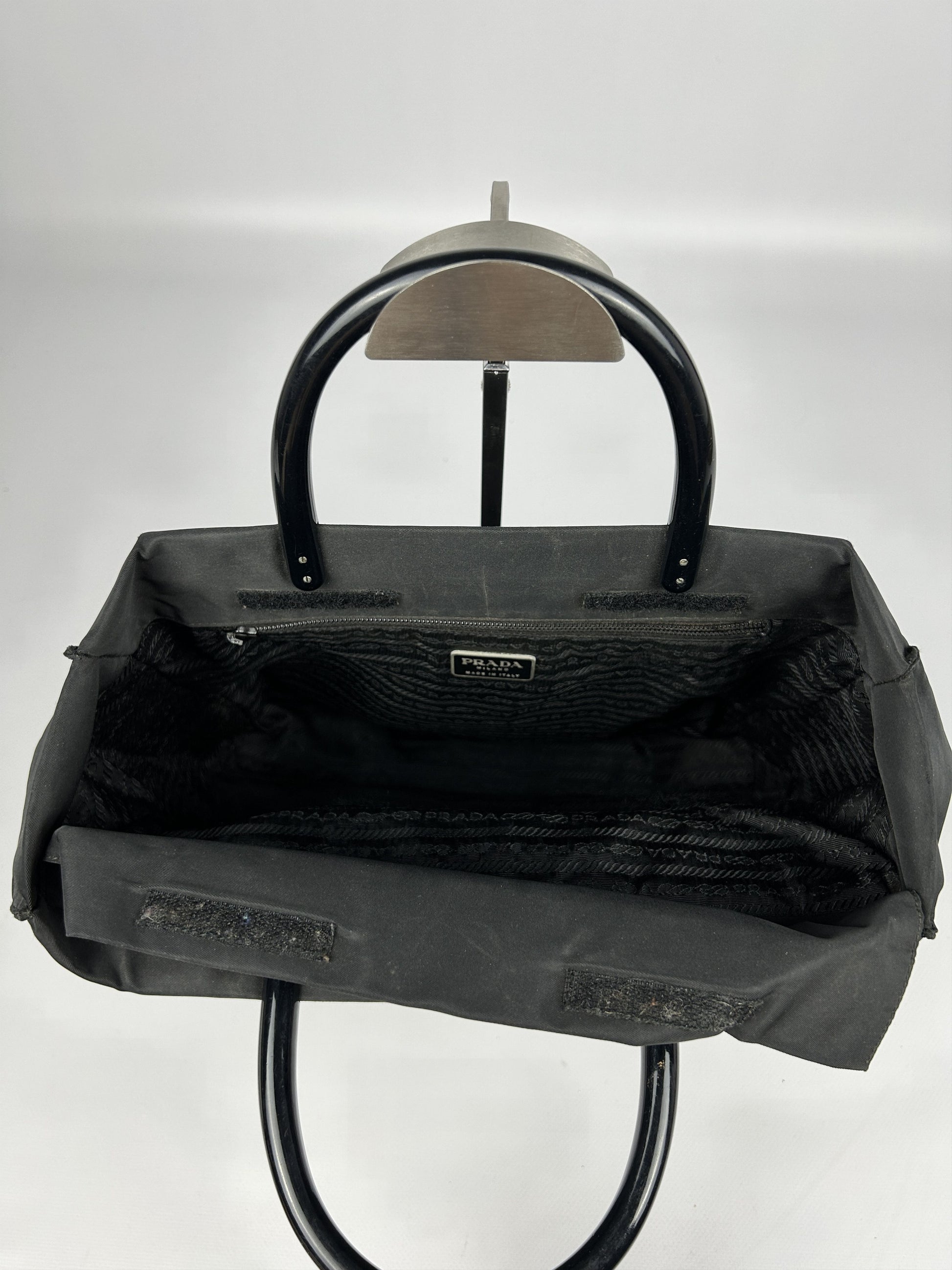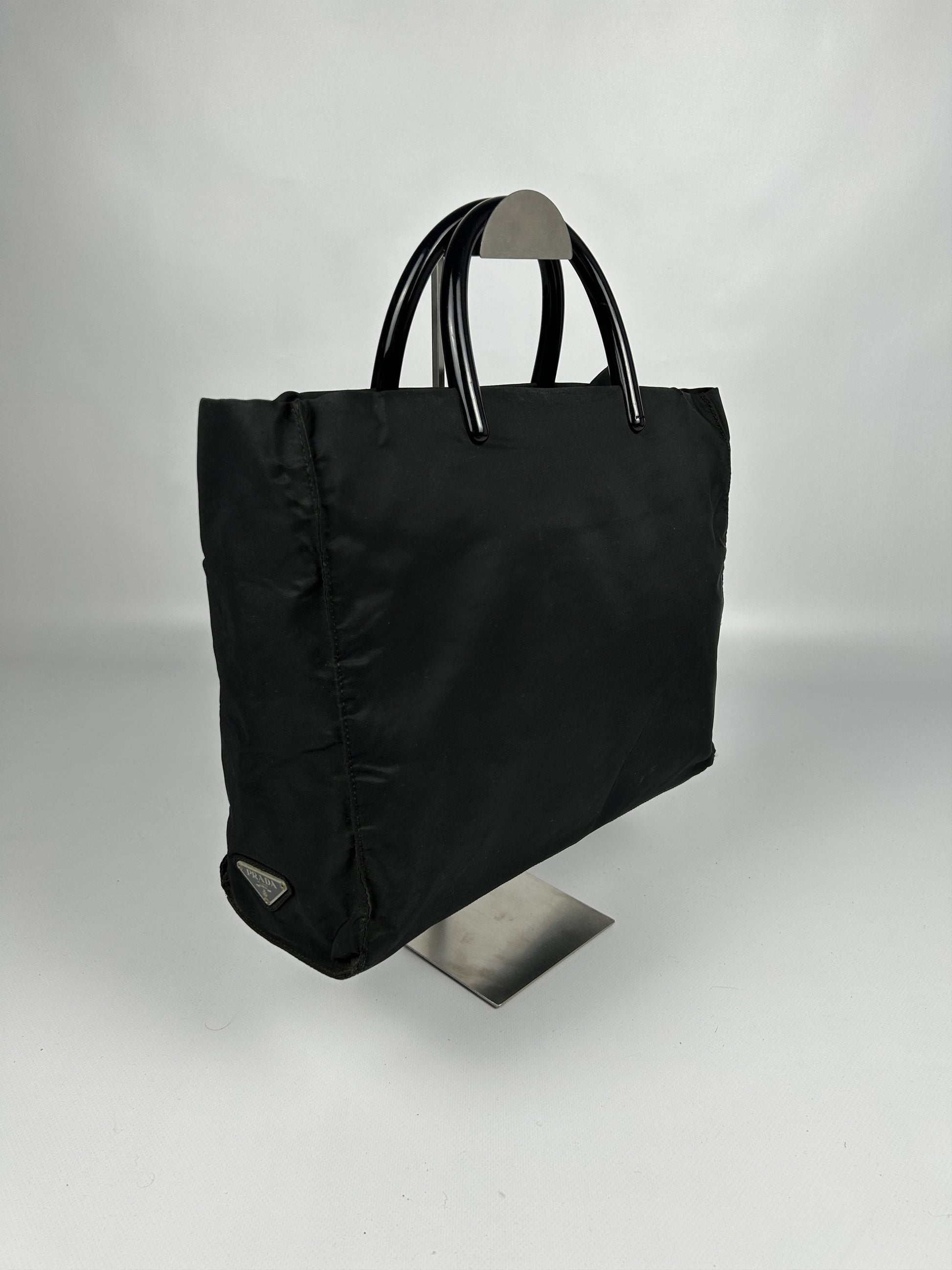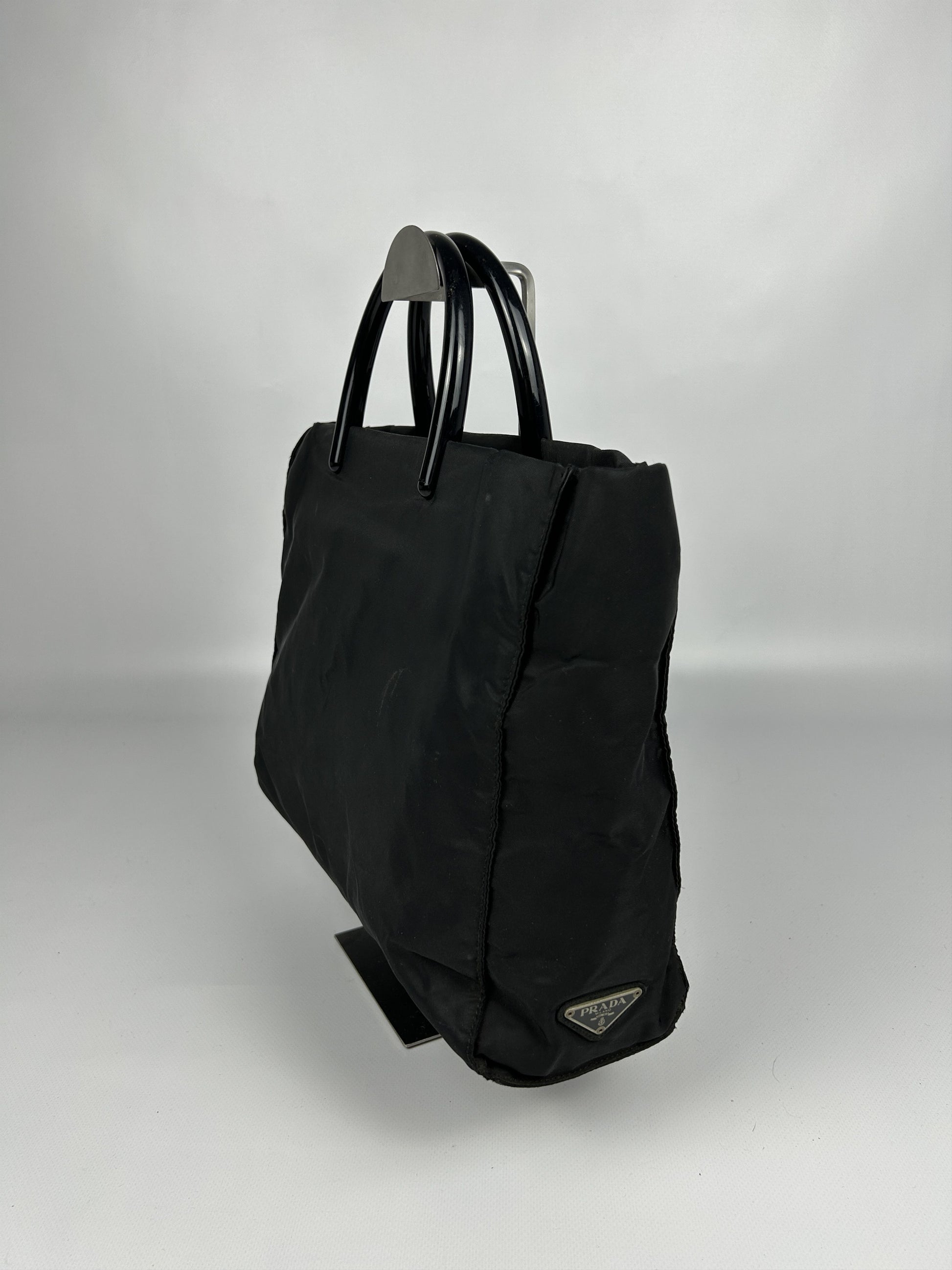 Vintage y2k prada nylon triangle logo plastic handle bag